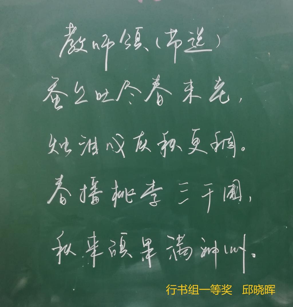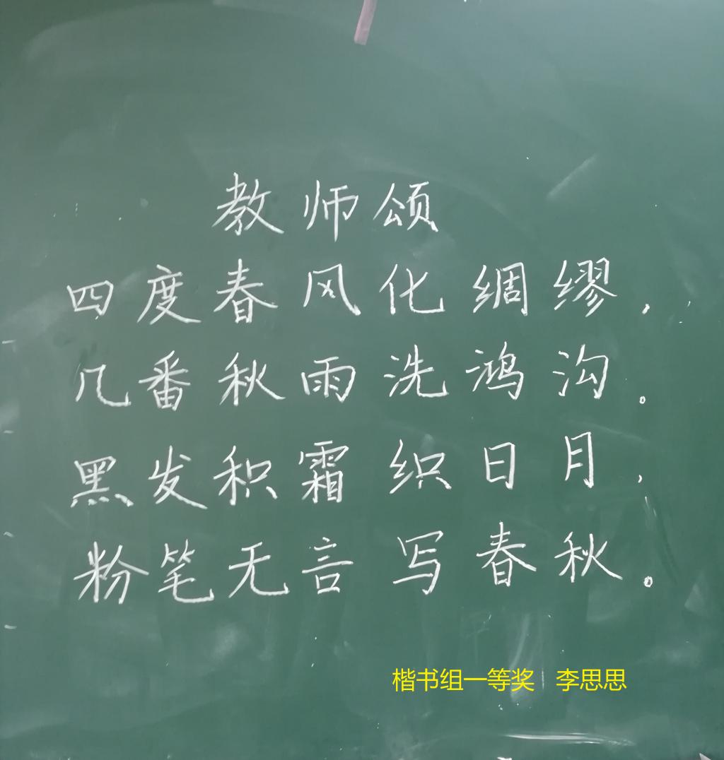 通过比赛激发了教师练习教学基本功的热情,特别是教师通过训练、比赛,在比较中了解了自己的实际水平,促进了粉笔字书写水平的提高。