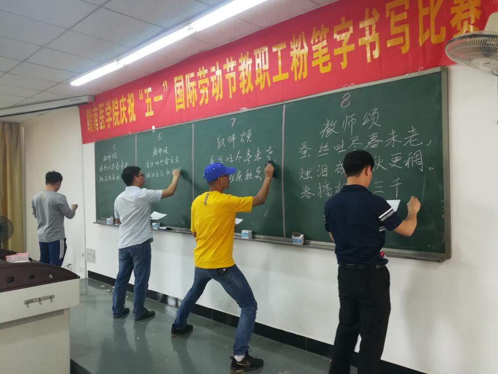 为5.1国际劳动节来临之际,为助力教学技能训练,强化教学板书设计意识,提升粉笔字书写水平,4月29日,学校工会在黄金校区第二教学楼2408教室举行了以“当好主人翁,建功新时代”为主题的教职工粉笔字比赛。